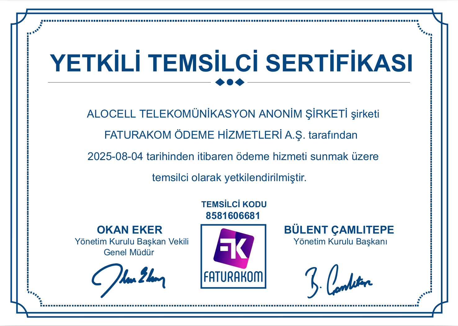 06.03.2014 tarihinde kurulan firmamız Bilgi ve iletişim teknolojileri kurumundan almış olduğu STH-SMH-İSS servis sağlayıcı lisanslarıyla faaliyet göstermeye başlamış olup, 31.12.2023 tarihinde bilgi teknolojileri kurumu yetkilendirme daire başkanlığından almış olduğu lisanslarını şirketimizin almış olduğu karar ve politikalar doğrultusunda kendi iradesiyle yetkilerinden feragat etmek suretiyle lisans süreçlerini sonlandırarak bireysel ve kurumsal müşteri nezninde ihtiyaçlarını karşılayabilecekleri Alocellpay platformuyla faaliyetlerini sürdürmeye devam etmektedir.